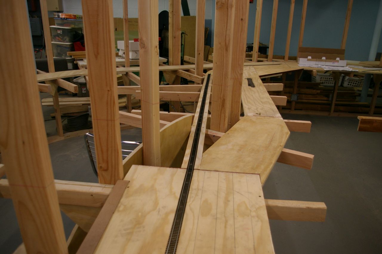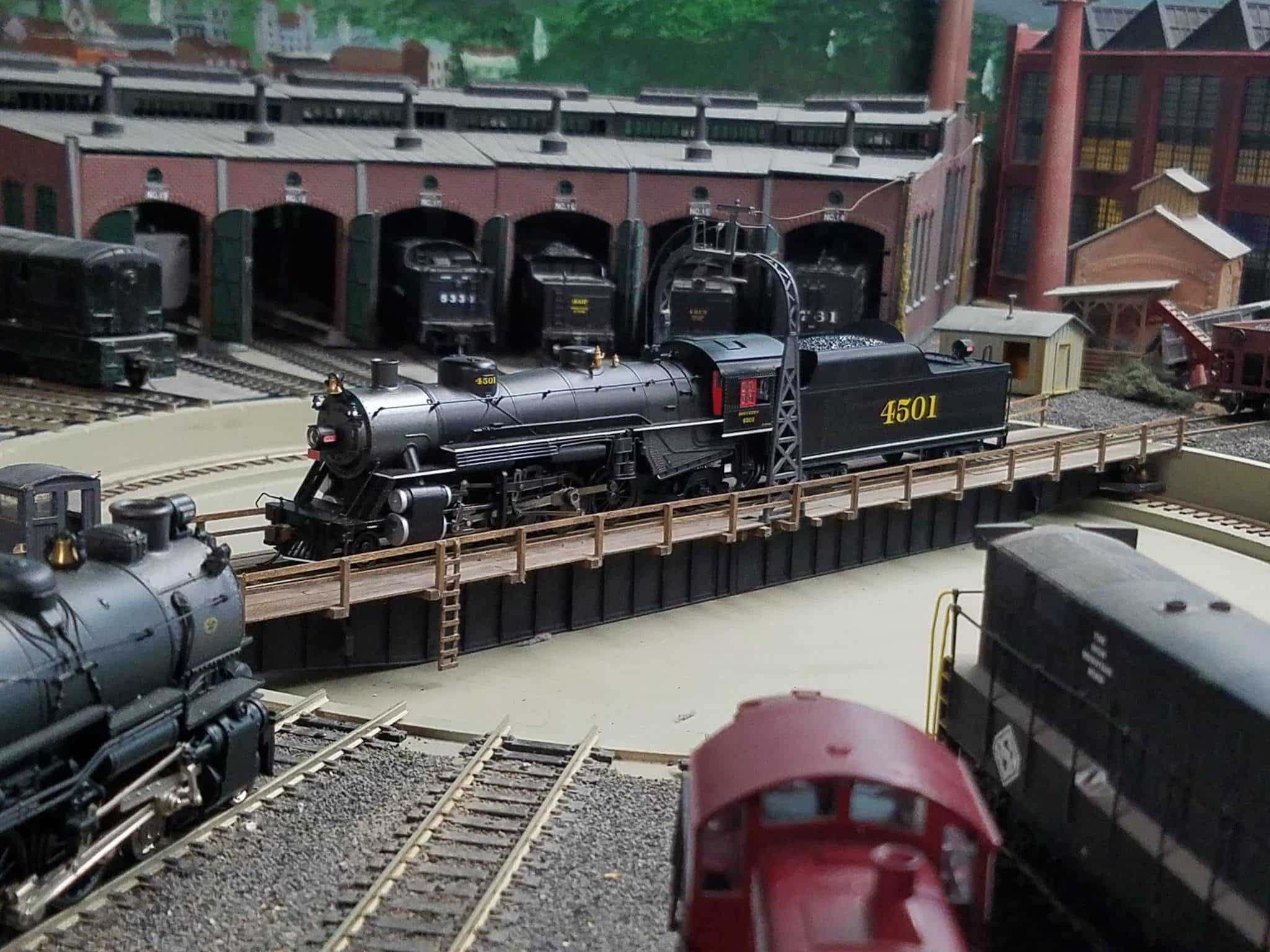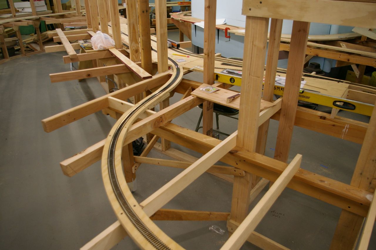 The new layout will represent the operations of railroads in northern New Jersey and northeastern Pennsylvania. Starting at the Hudson River in Jersey City, the line run will west through New Jersey suburban towns and the Pocono Mountains to reach Scranton, with a secondary route serving the cement industries of the Lehigh Valley. The plan draws inspiration from well known railroads of the region like the Lackawanna, Jersey Central, and Lehigh & New England, although towns and industries will represent the region rather than duplicate what once was there. The multi-level design will provide a long mainline and permit prototypical operations, with the bottom level storing trains, while the middle and upper levels will have full scenery for viewing and operations. The new railroad is a work in progress and will be opened in stages. Currently, a portion between staging loops is operational.