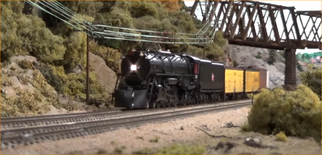 Milwaukee Road 261 “S3” 4-8-4 “Northern” hauls refer cars eastbound through the river scene.